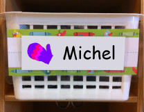 Nous avons été étonnés de la vitesse à laquelle les enfants (même nos plus jeunes bambins) arrivent à reconnaître leur propre casier de rangement, leur place à la table de collation et la place à laquelle ils doivent s’asseoir à la salle de toilette en recourant aux correspondances alphabétiques. Bien entendu, cette façon de faire stimule les enfants et donne l’occasion au personnel éducateur de choisir qui s’assoit près de qui, ce qui permet ainsi de changer parfois de façon positive la dynamique du programme. À leur arrivée, les préscolaires se précipitent pour retirer leurs vêtements d’extérieur afin de choisir leur carte de correspondance prénom/lettre qui se trouve dans le panier pour l’apposer sur le tableau de présence. Dans le cadre de nos programmes, nous avons réalisé que le recours aux correspondances alphabétiques a facilité la transition pour les enfants ainsi pour le personnel éducateur.