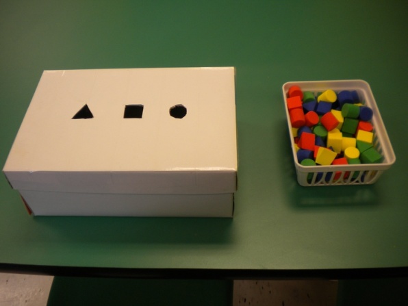 Les tâches de la « boîte à chaussures » regroupent en une unité des activités en vue d’enseigner aux enfants diverses habiletés à partir de tâches d’insertion/d’extraction de base, des habiletés manuelles bilatérales et des aptitudes préscolaires (jumeler, trier, structurer, dimensionner, façonner, colorer), sans oublier de favoriser la dextérité des doigts et la coordination oculo-manuelle. La « boîte à chaussures » comprend tout le matériel nécessaire pour exécuter la tâche. À mesure que l’enfant progresse dans son apprentissage, il apprend à exécuter la tâche de façon autonome, notamment à prendre la boîte, à la placer sur la table et à la ranger lorsqu’il a terminé.