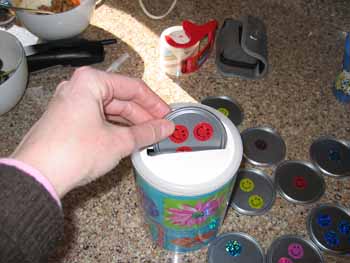 Le matériel d’apprentissage de l’habileté que vous souhaitez enseigner peut être très peu dispendieux; il peut s’agir d’objets domestiques et de matériaux recyclables. Par exemple, pour enseigner le jumelage et le triage de couleurs, conservez des bouchons de bouteilles et de contenants de jus et placez-les dans des contenants vides de compote de pommes. Comme activité d’insertion, vous pouvez utiliser des couvercles de boîtes de jus à insérer dans des fentes faites sur des contenants en plastique vides.