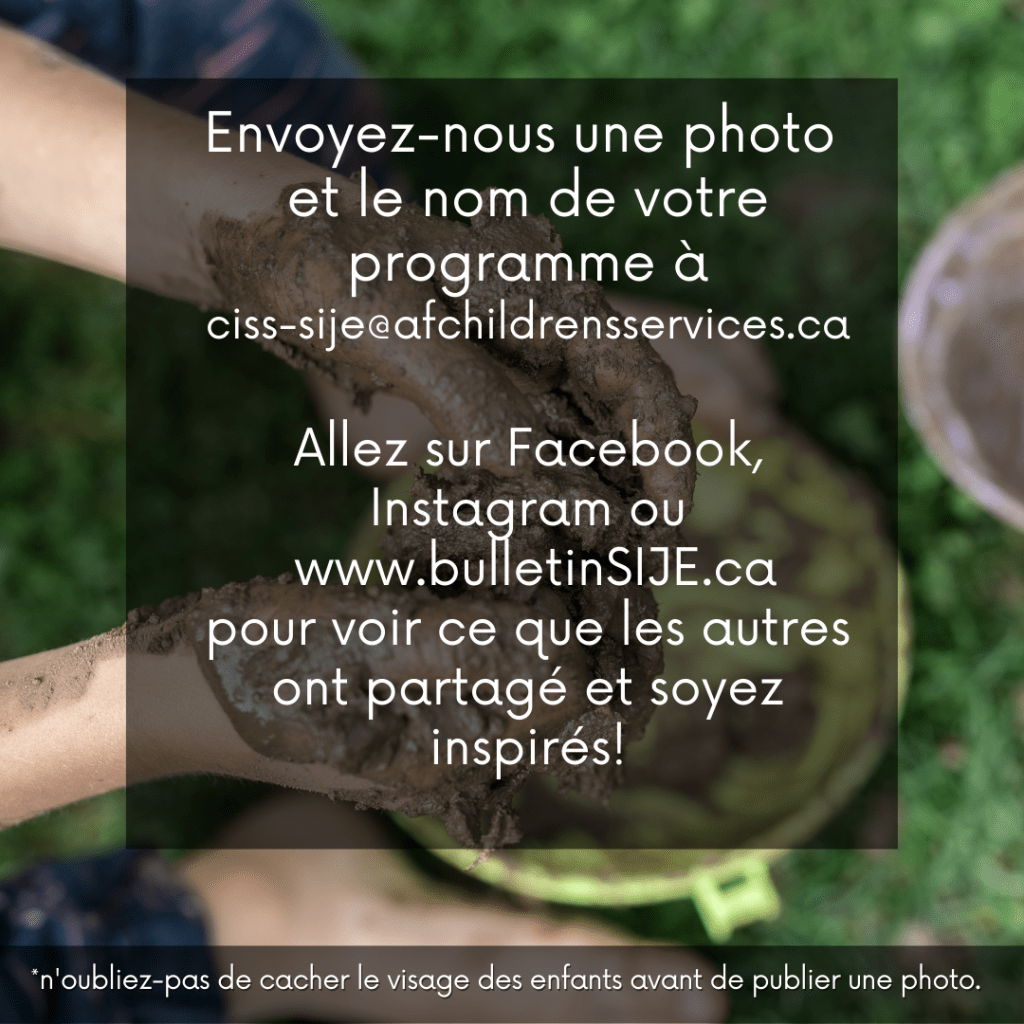 Lors de la récente réunion des superviseurs, une personne a mentionné qu’elle ne pouvait pas imaginer son programme sans le soutien du SIJE, et je suis d’accord, mais je me souviens de l’époque où le SIJE n’existait pas. En tant qu’éducatrices et éducateurs, nous faisions simplement ce que nous pouvions. Nous lisions ce qui était disponible (généralement pas grand-chose), posions des questions aux parents et espérions que nos interactions les soutenaient, mais nous n’étions jamais tout à fait certains de faire tout ce que nous pouvions. Parfois, nous avions l’impression que nous ne pouvions pas réussir sans soutien; je suis sûre que certains enfants n’ont pas été inclus alors qu’ils auraient pu l’être.